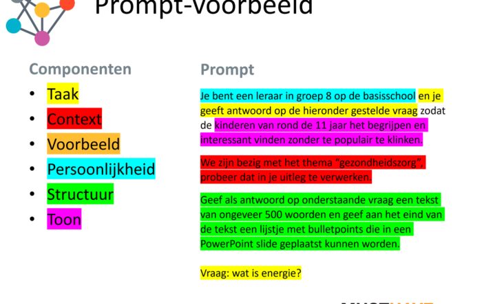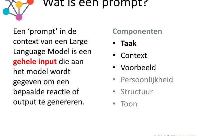 Gebruik een prompt-structuur Wat is een prompt? Om optimaal gebruik te kunnen maken van het schrijftalent en de kennis van een LLM is het gebruik van een goede prompt cruciaal. “Een ‘prompt’ in de context [...]